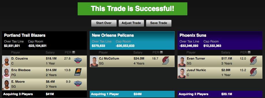 Trade 1 — Boogie/Bledsoe for McCollum/Nurkic/Turner
