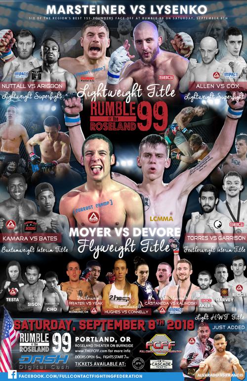 The Full Contact Fight Federation (FCFF) is back at the Roseland Theater this Saturday, September 8thfor Rumble at the Roseland 99. That’s right, this is the FCFF’s 99thshow dating all the way back to Rumble at the Roseland 1 in January of 2002. Over 16 years later, the promotion that has become the number one organization for amateur fights in Oregon is bringing it harder than ever and this weekend is no exception. With sixteen total fights and five of them being title bouts, this card is definitely worth the price of admission.