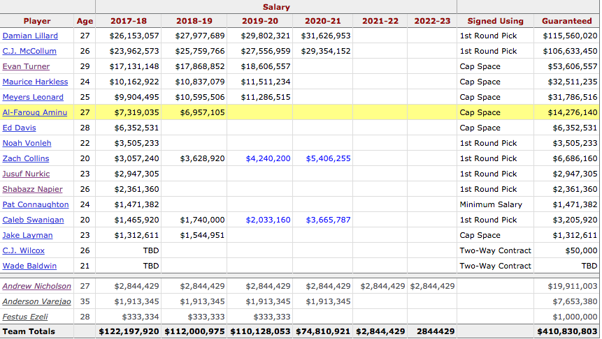 Thanks to some smart — and some incredibly stupid — contracts, the Trail Blazers are on the hook for over $112 million in guaranteed money through the 2018-19 season.