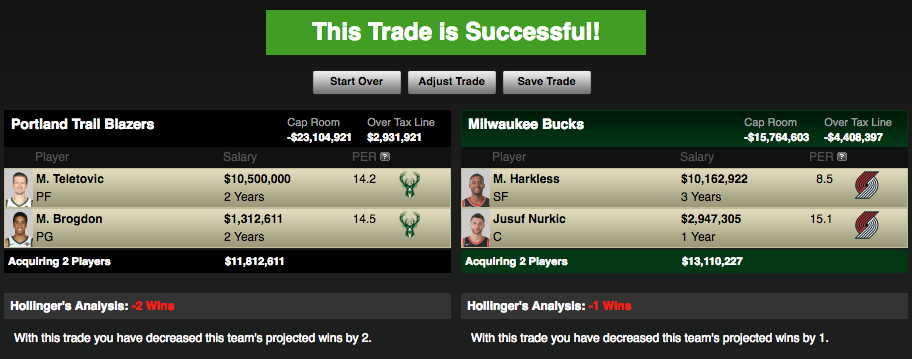 We’re trading Bosnians, baby! Malcolm Brogdon gives the Blazers some much needed backcourt defense, and Mirza Teletovic is a sniper from deep.